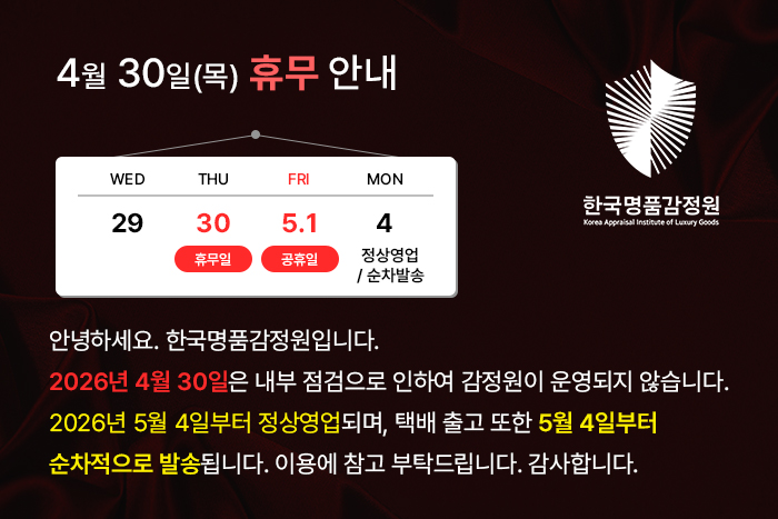 정품보증서, 개런티카드, 가품소견서 발급 및 감정이 가능합니다.