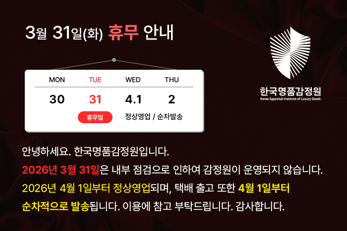 정품보증서, 개런티카드, 가품소견서 발급 및 감정이 가능합니다.